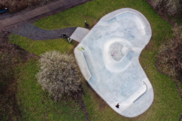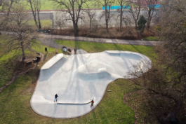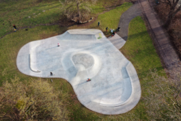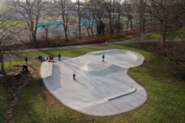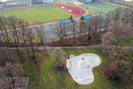 Skatepark mit einer Prise Pumptrack. Besonders geeignet für Neulinge auf dem Brett oder Rollgerät der Wahl. Teil der Parkanlage am Georgengarten. Parklife. Fun for all.