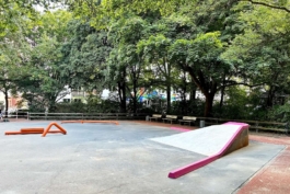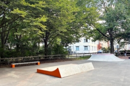 Skatepark-upcycling at Windheimstraße in Hanover: Discarded skate obstacles from "3er" as filling for the re-design. Combined with an arrangement of re-assigned mobile ramps - and you get: simple and inclusive pleasures at an affordable budget.