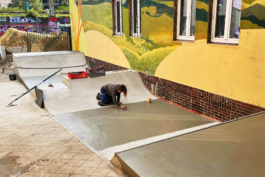 Einsteiger Miniramp-Kombo an der Gleis D-Skatehalle in Hannover. Anfängerfreundliche Micro-Spine als Ergänzung des Gleis D-Angebots. Gebaut im Rahmen eines Erasmus-Projekts mit Jugendlichen aus Spanien und Marokko.