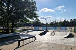 Neuer Skatepark in Hamburg-Niendorf: die Skate-Anlage am Sachsenweg. Schicker Aktivpark am Rand der Sportanlage in Eimsbüttel. Kombination aus geradlinigen Street- und flowigen Bowl-Features.