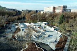 Ein Skatepark, wie man sich ihn erträumt! Fetter Bowl mit Pool-Cooping und 3m Deep-End, Flow-Section, Rail-Lines, Granit-Ledges, Real-Street, Flutlicht. Am Heizhaus bleiben keine Wünsche offen!